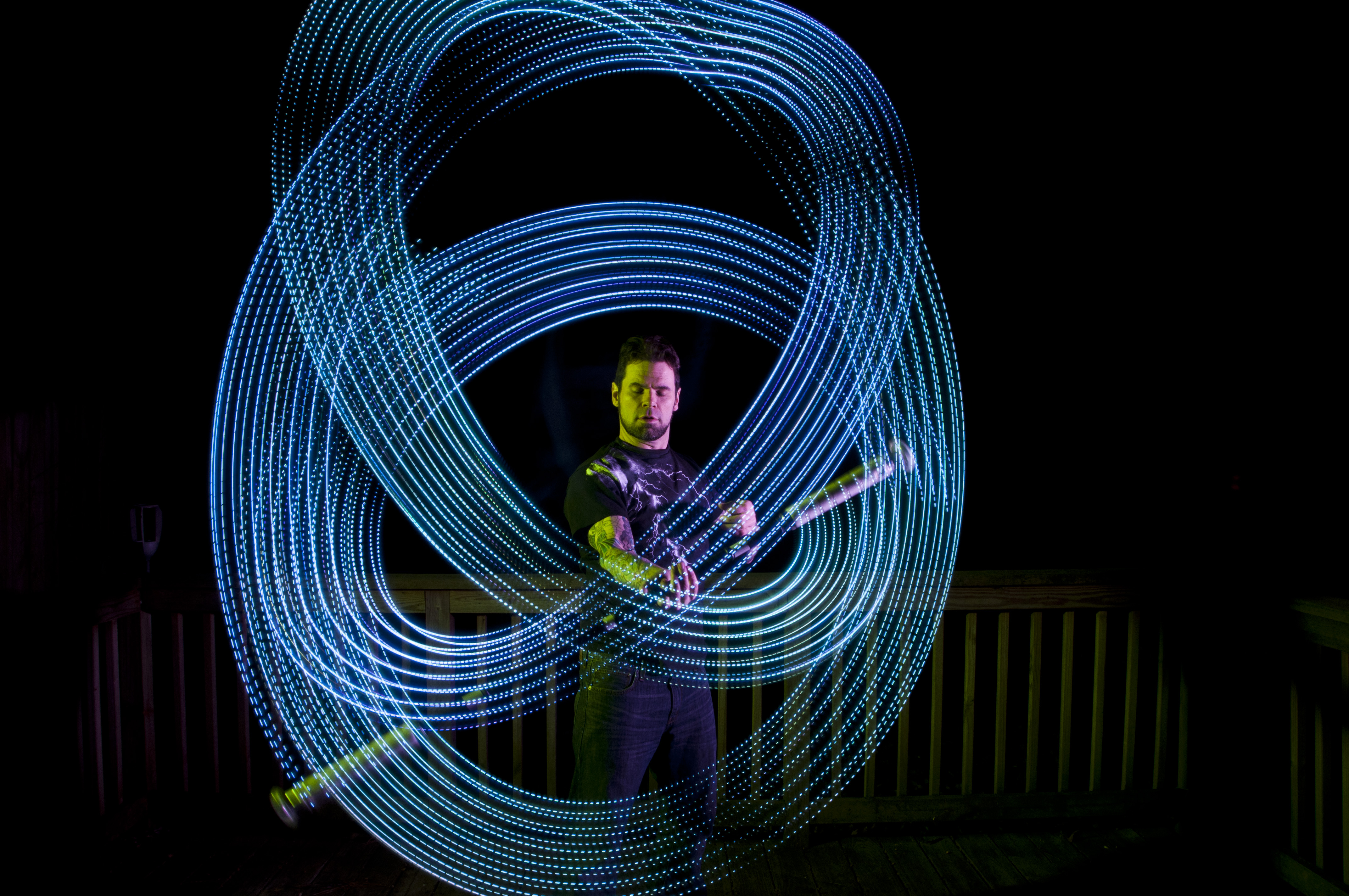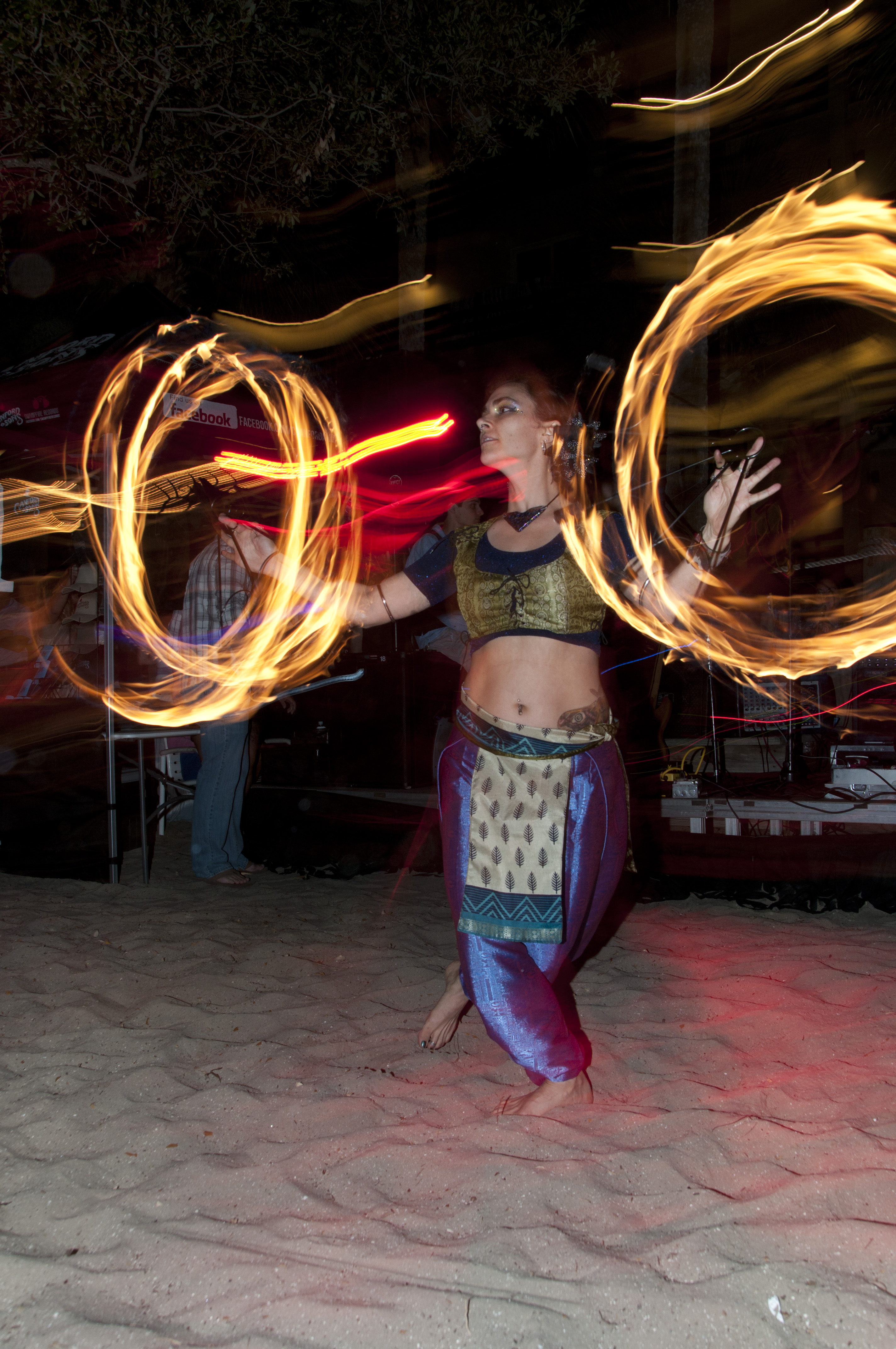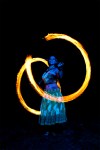 Hecate’s Darlings, a non-profit art collective wherein visual and performing artists collaborate to create a unique brand of self expression, brings belly dance, fire, and sometimes even live animals together. Based out of Savannah, Georgia, this collective is comprised of the Tribal Fusion troupe The Painted Graces, two fire troupes, Balefire and Firebelly, and photographic artist Charlie Snyder. The performing artists of the troupe each have their own connection to fire and individual reasons for using fire with dance. Alexandra Mitchell is the collective’s “seasoned veteran of all things belly dance and flames” and handles safety and direction. According to Alexandra, “fire adds a dark element of mystery to the dance. It allows the moves to be illuminated and gives the dancer the ability to showcase an area where they would like the audience to center their attention.” Hot stuff Eric Reber, the sole male belly dancer of the group, enjoys the meditative quality fire staff brings to a performance. Eric believes that “fire brings a sense of balance and peace that provides benefits above and beyond the moment of performance.” Alexandra appreciates the harmony and balance fire brings to her and the power the element has to relax her and clear her mind. Alexandra notes that, “fire is primal and feared. It has a life force that demands respect.” In addition to its awesome power, Alexandra believes fire infused into the dance to be magical and also finds that it “adds a threat of looming suspense” in the way it fascinates and mesmerizes the audience. Hecate’s Darlings takes advantage of every opportunity to pull out their fire toys and light up the night.